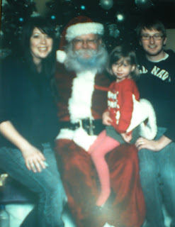we were doing a little Christmas shopping, and thought it would be fun to go for a quick visit to Santa. elizabeth wanted daddy and i to sit with Santa too. Santa asked her what she wanted, and she replied 'I want tinkerbell stuff...and Santa tinkerbell has three movies.' lol, what can i say, she knows what she wants!